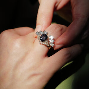 The Vertex ring belongs to this category. Its structure is composed and directional, built with a sense of balance rather than flourish. This restraint allows the gemstone at its centre to communicate power through presence rather than embellishment.